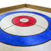 Подсчет очков: По окончании раунда, когда все шайбы брошены, производится подсчёт очков. Шайбы, находящиеся в пределах красного поля, приносят 10 очков, а шайбы в пределах синего круга – 5 очков. Шайбы, оказавшиеся за пределами мишени, не приносят очков.